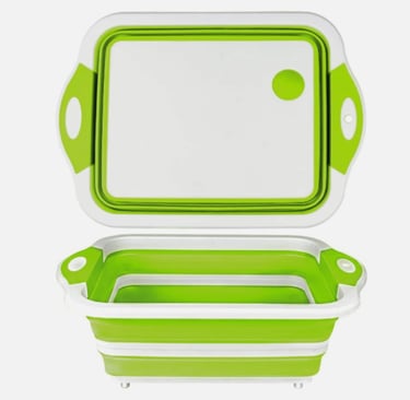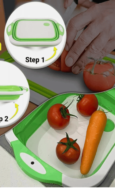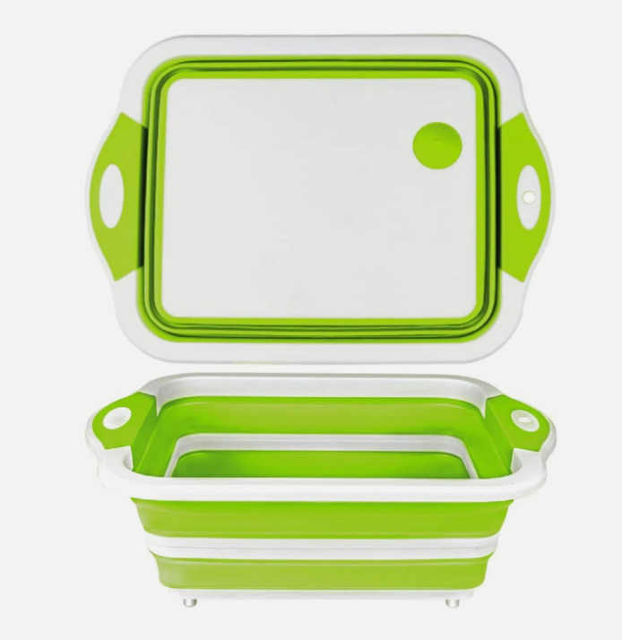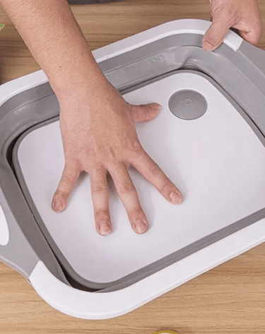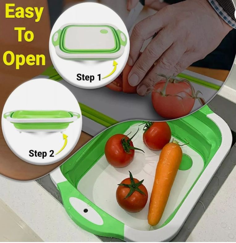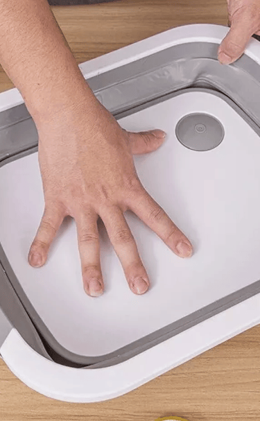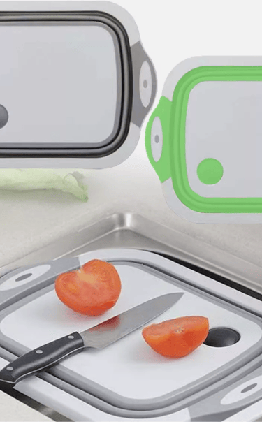 This folding cutting board is a game changer! The sink drain feature is so convenient.